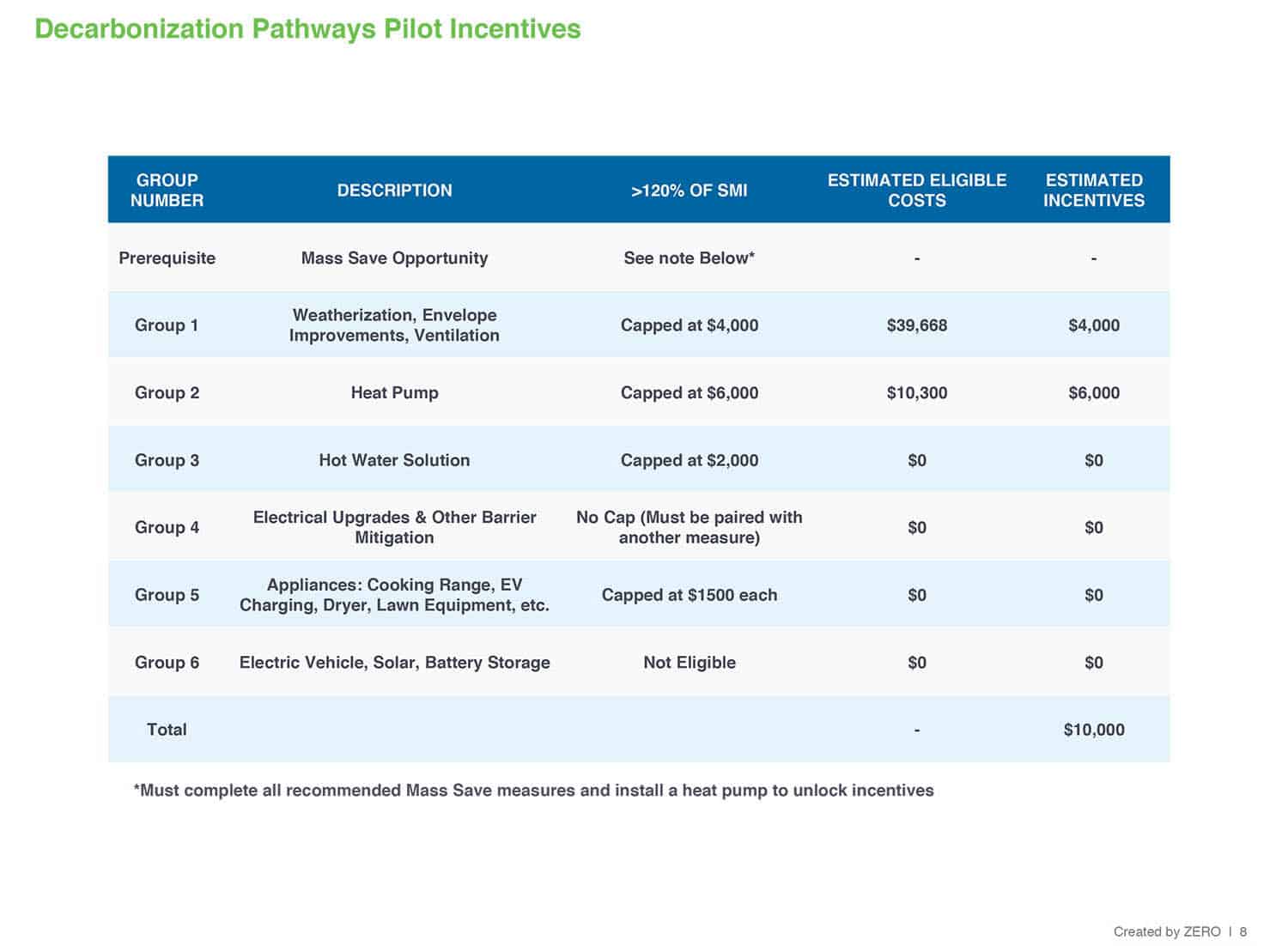 • Estimated Net Cost to Decarbonize